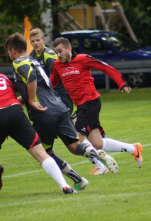 Die erste Halbzeit war ausgeglichen. Beide Teams tauchten zaghaft vor dem gegnerischen Tor auf. Nach einer halben Stunde erzielten die Gäste dann die Führung. Christoph Baumer erzielt die Führung per